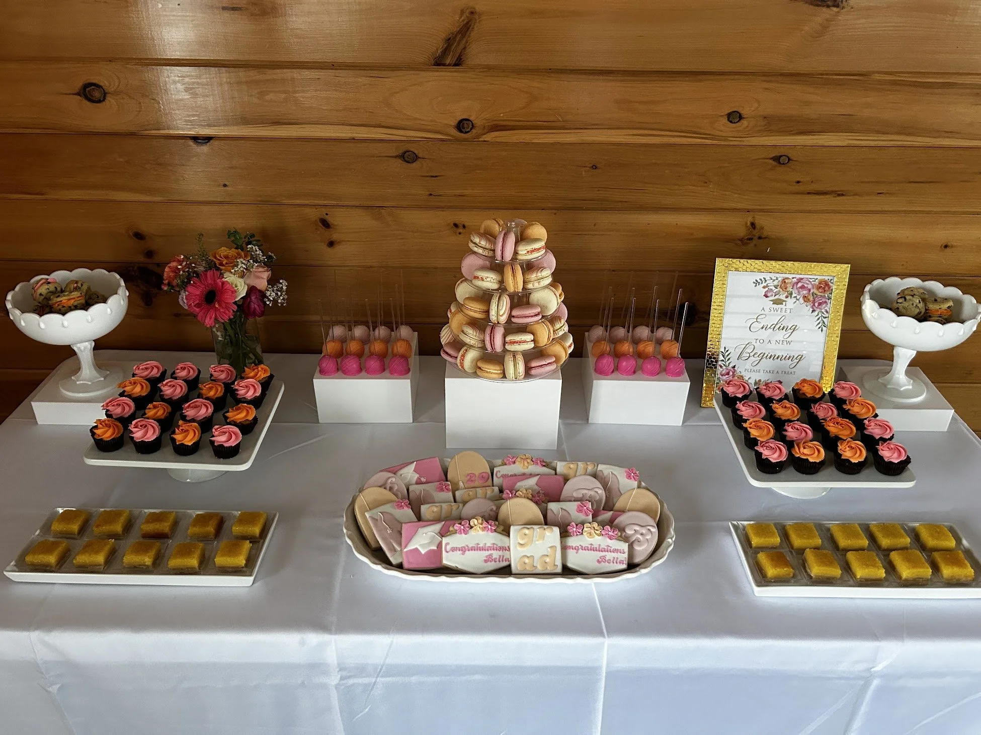 Our dessert table displays are a show stopping, unique and of course delicious way to wow your guests no matter the occasion! Why choose just one dessert when you can have a variety? Choose from one of our pre-built dessert table options to fit your event and budget, or we can work with you to create a custom dessert display specific to your event theme, colors and taste preferences!