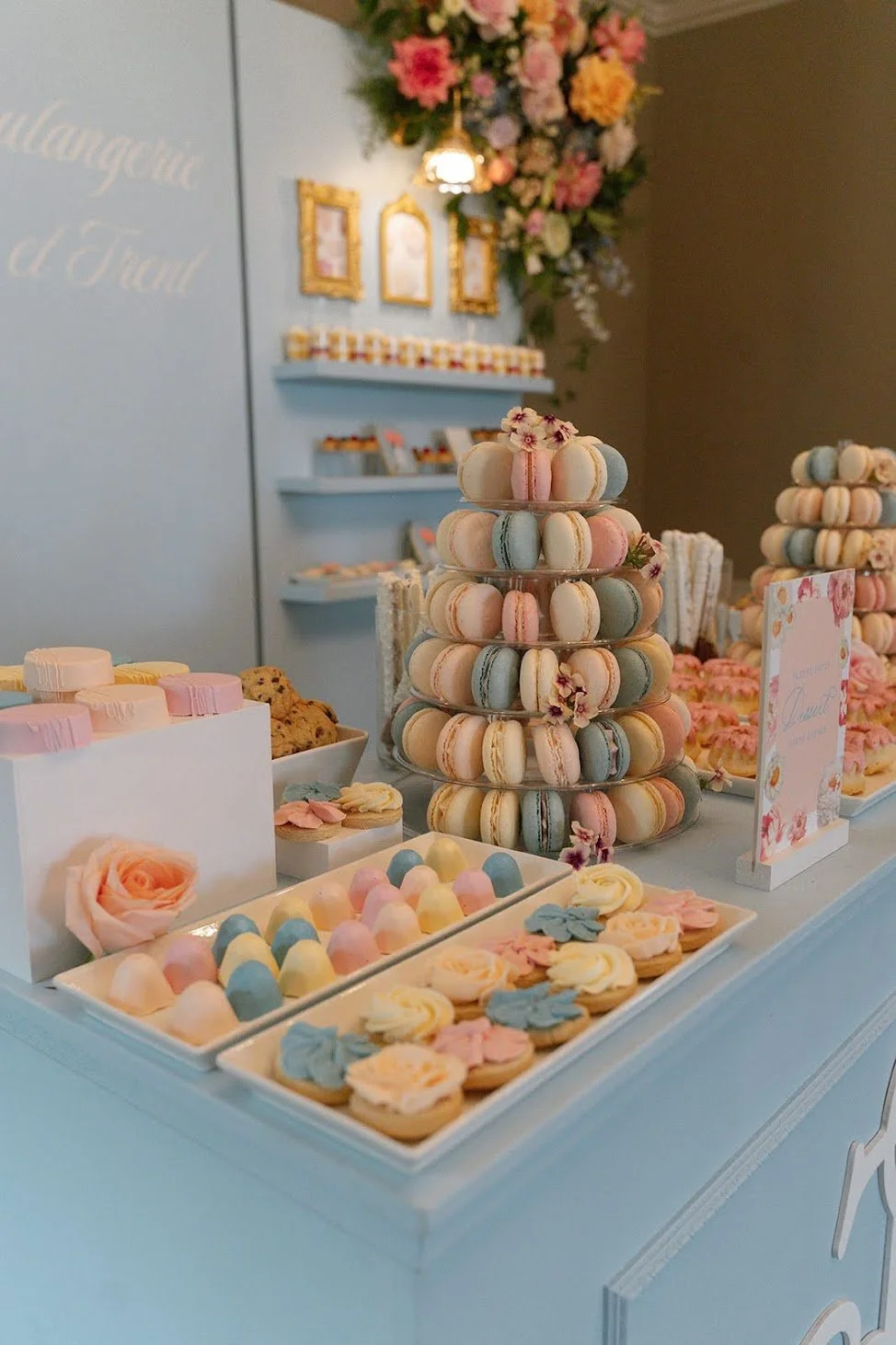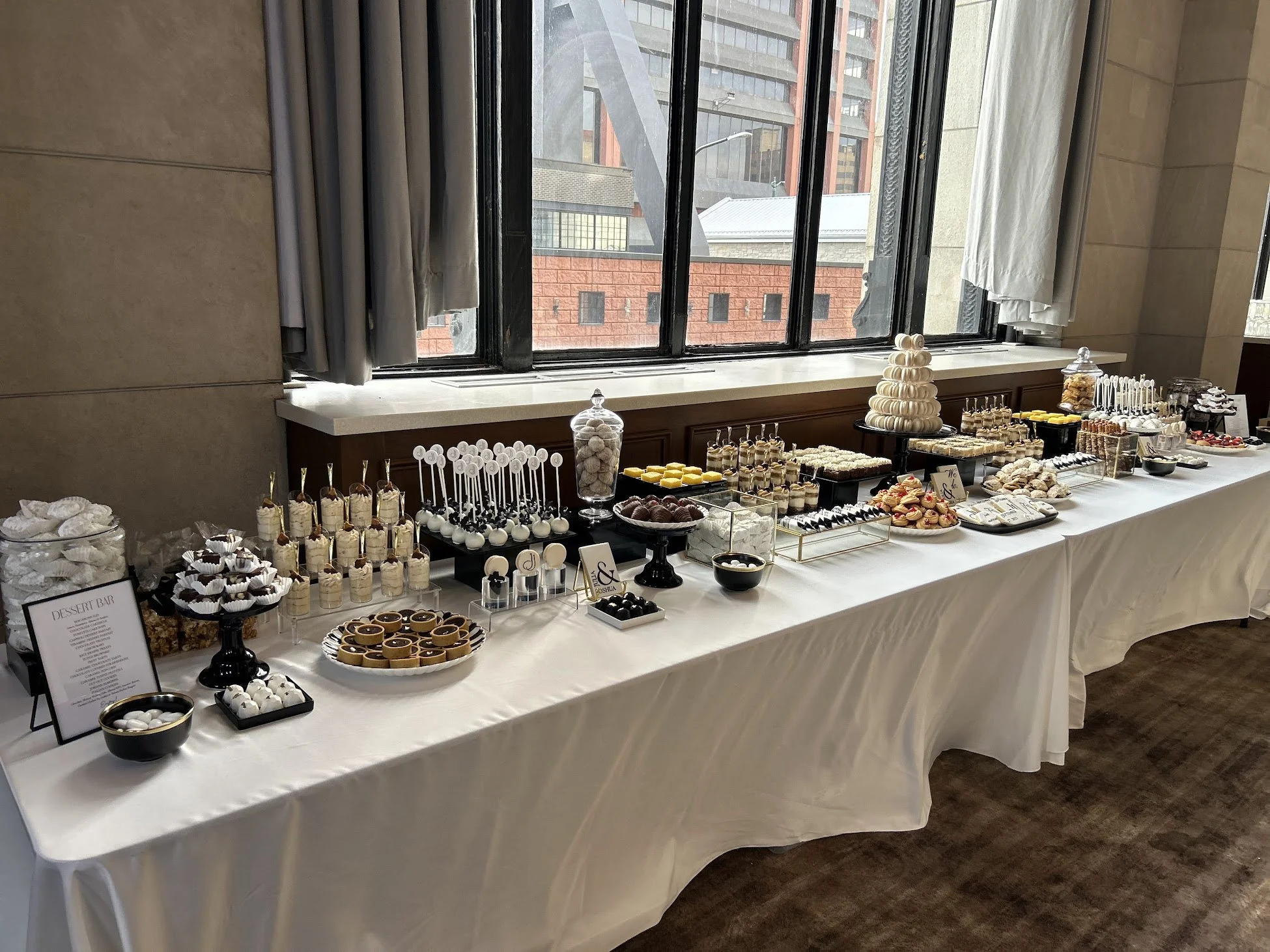 How much are your dessert tables? General estimates are very difficult to give, as we offer a wide range of options that vary in price. Once we have an initial consultation call with you to get a sense of what you are looking for we then send you a tentative quote specific to your event!