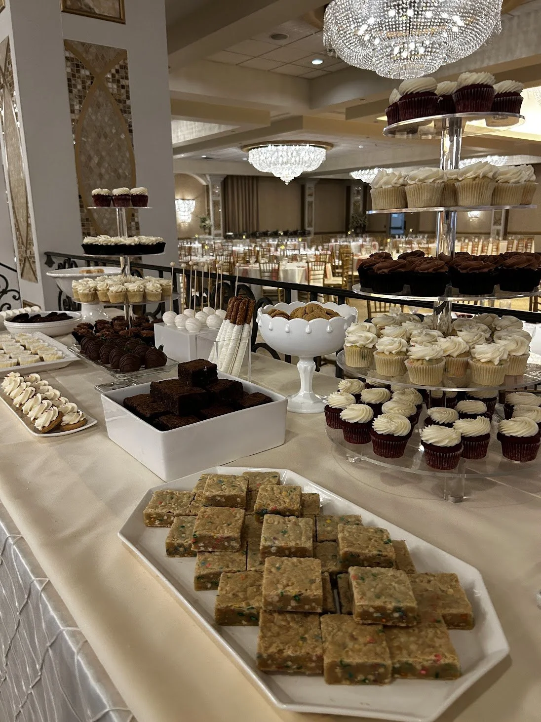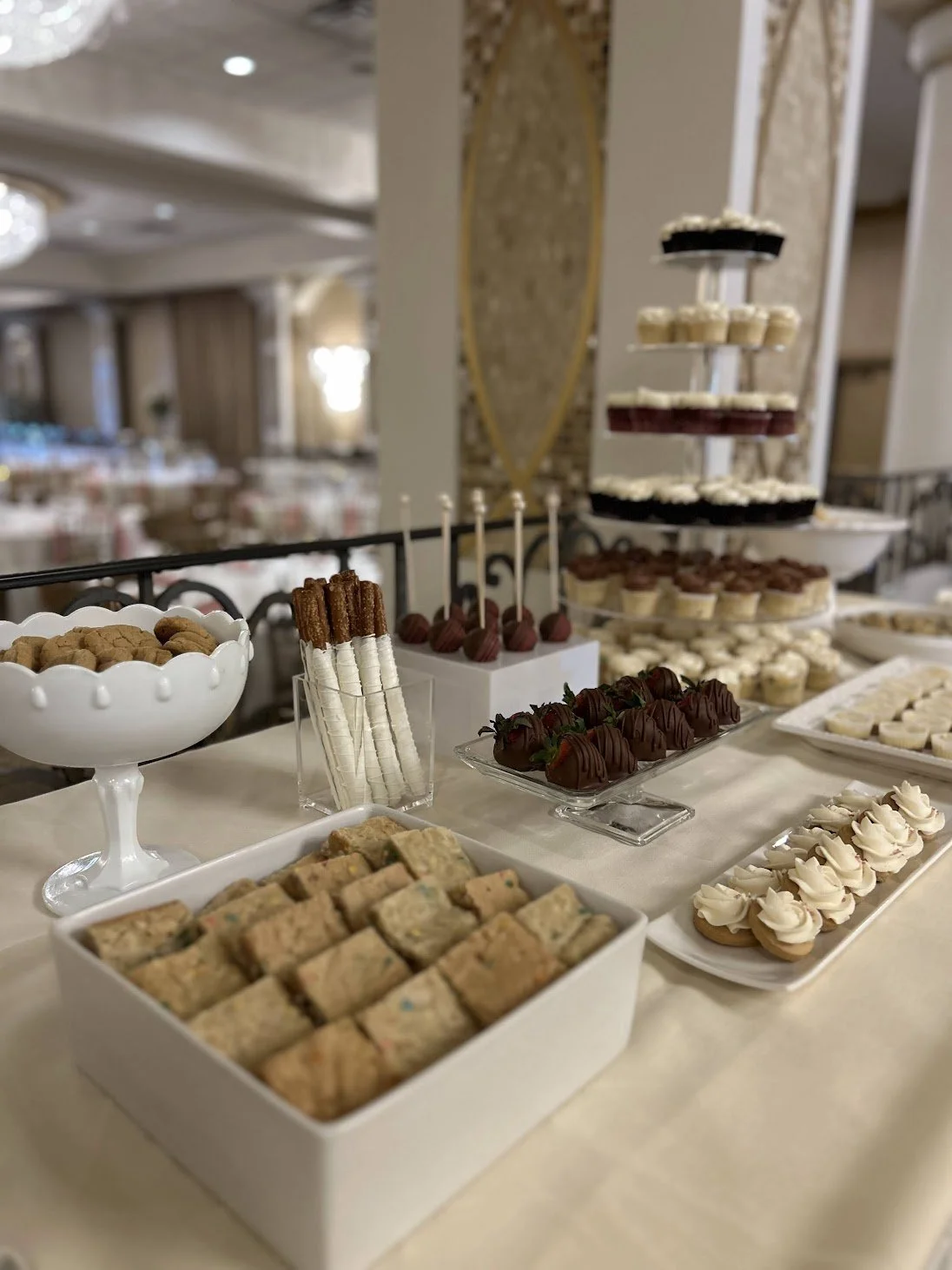 Whether you are looking for a traditional wedding cake, classic cupcakes or an assorted dessert table display- or a combination, we have got you covered! Let us help you design your dream dessert experience that your guests won’t soon forget! You can customize the flavors, design, and display of your cake, cupcakes, cookies, cake pops, and more to create a unique, show stopping, and completely delicious dessert display. Offering a range of delivery and prop rental options up to full day of set up and pick up services.